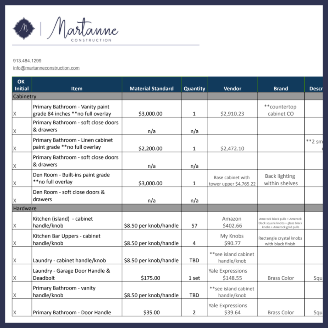 The Material Allowance Guide breaks down budgeting for finishes and selections.